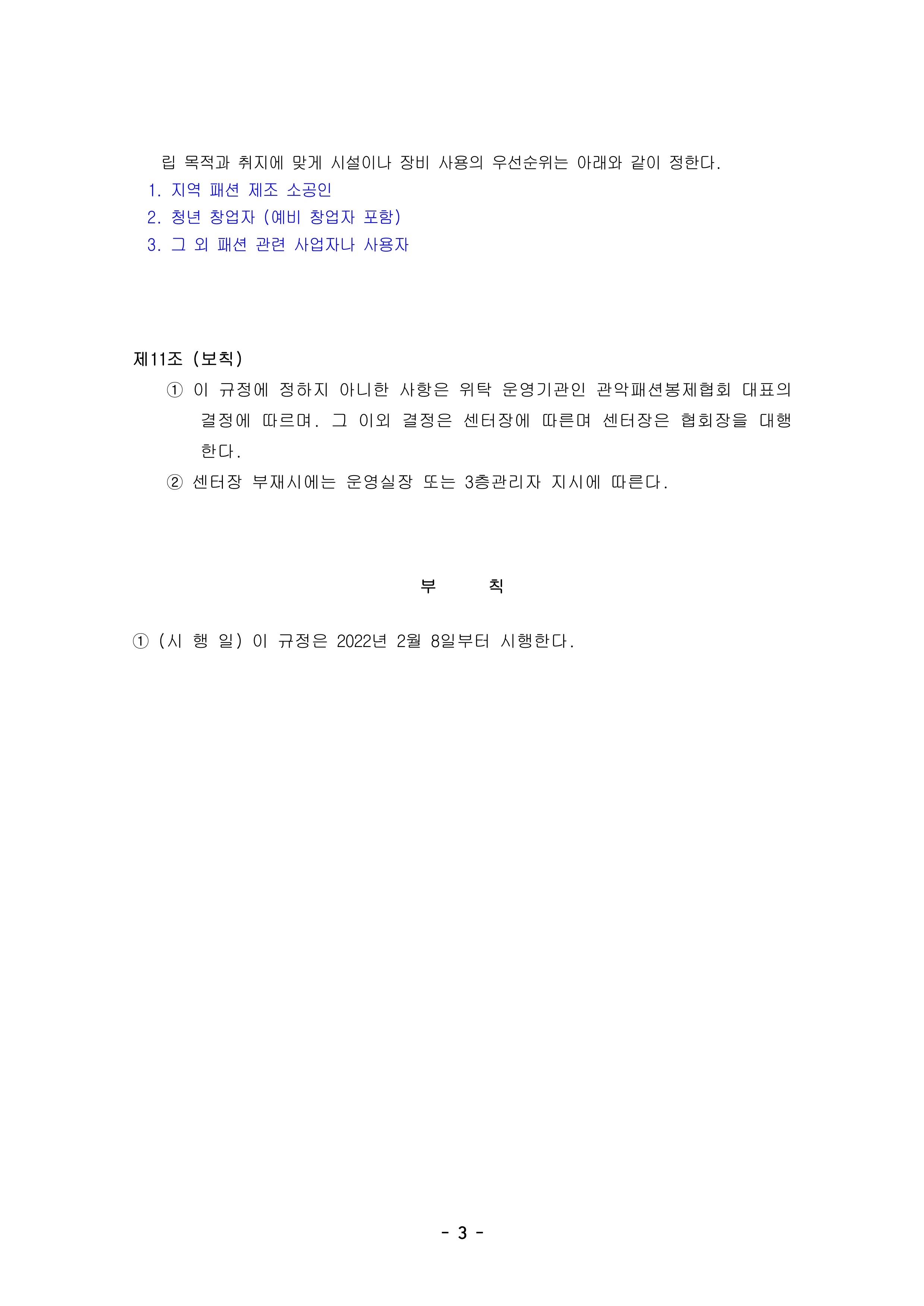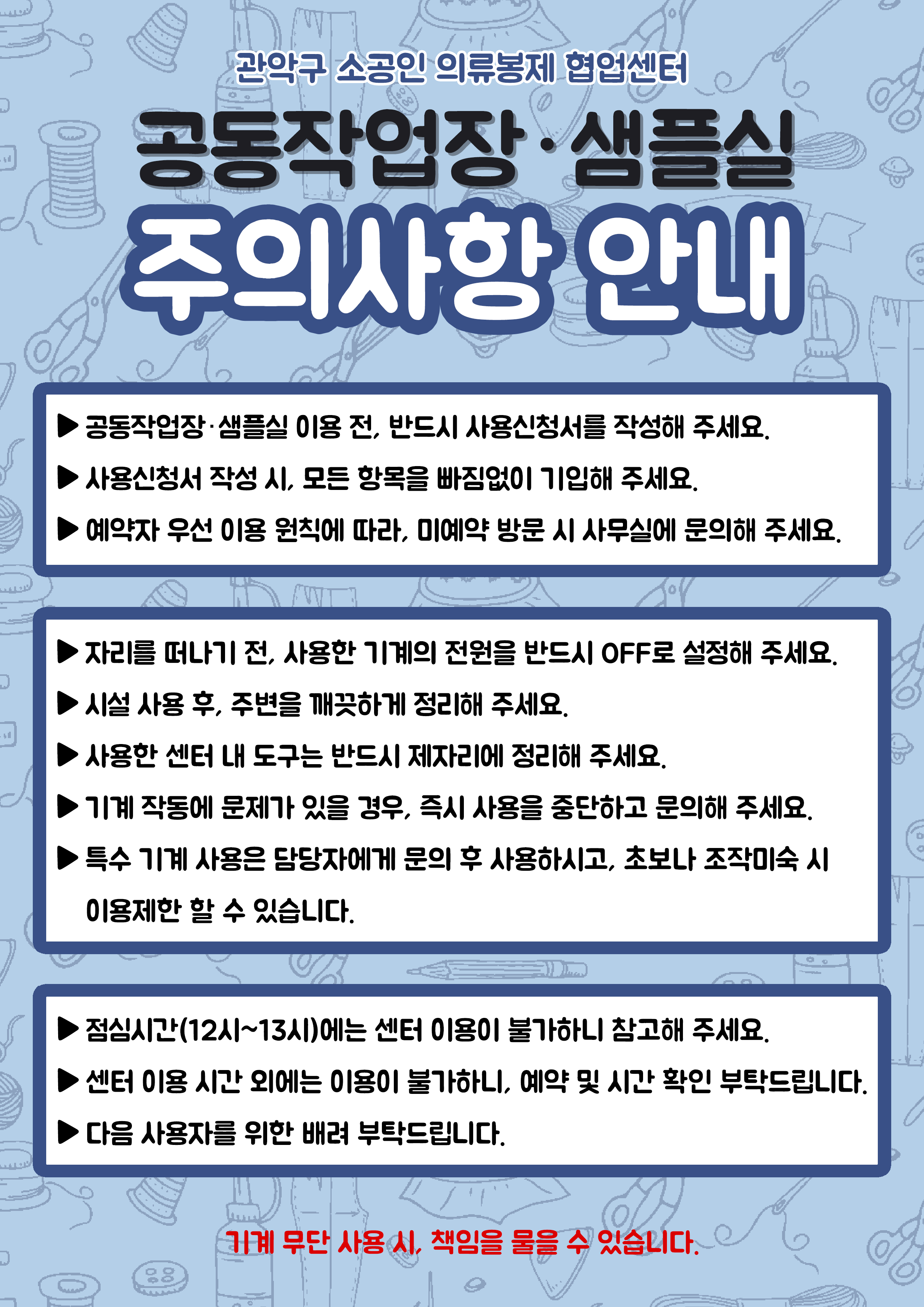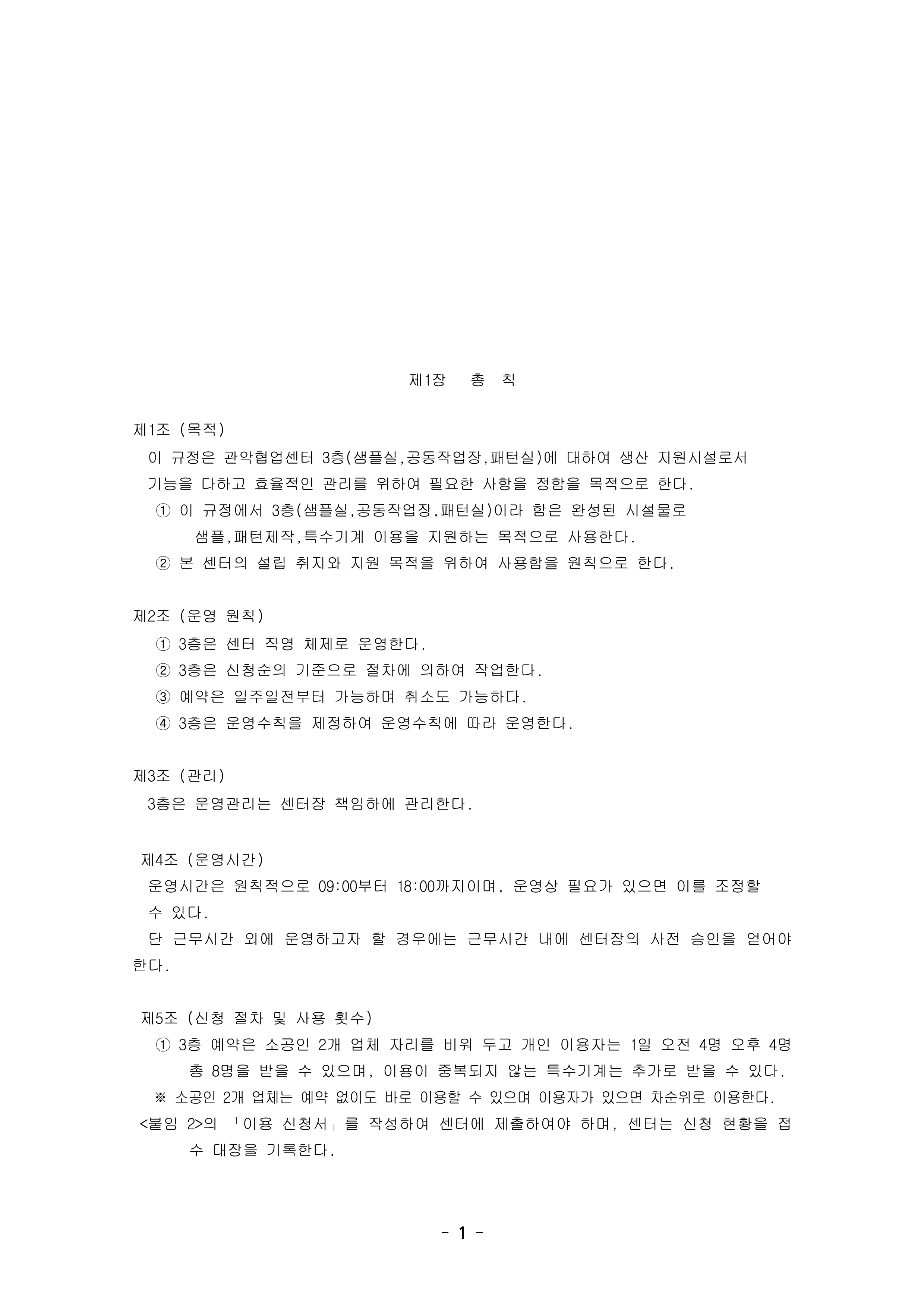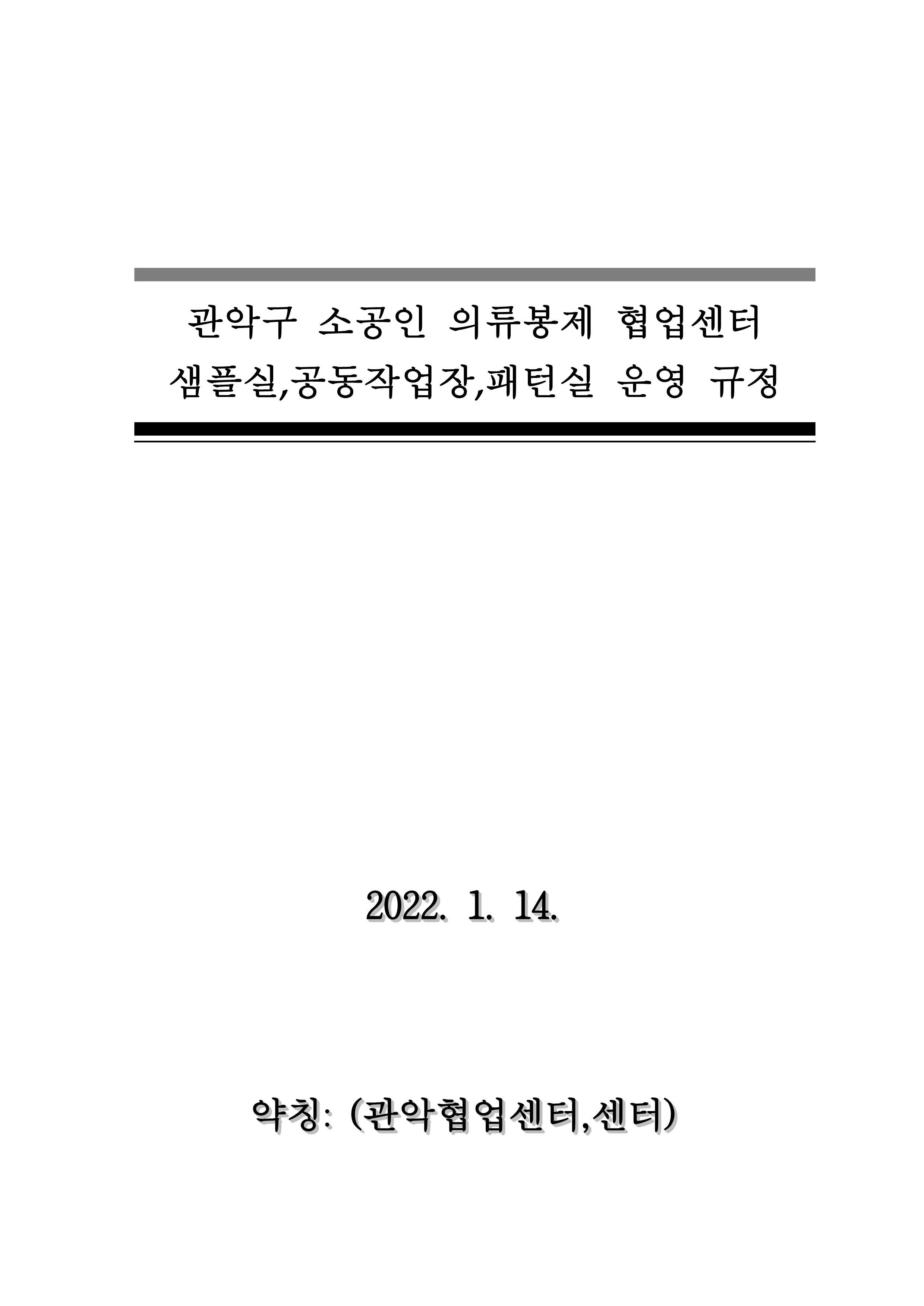 ¡¸°ü¾Ç±¸ ¼Ò°øÀÎ ÀÇ·ùºÀÁ¦ Çù¾÷¼¾ÅÍ¡¹ °øµ¿ÀÛ¾÷Àå,»ùÇÃ½Ç ¿î¿µ ±ÔÁ¤ ¾È³»